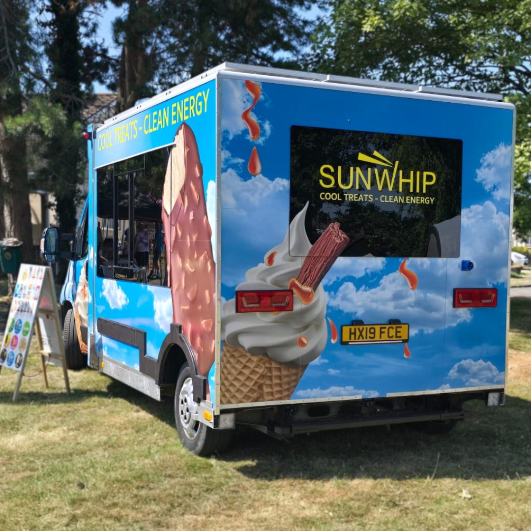 Solar powered, quiet and clean! Our emission-free ice cream van is available for hire throughout Somerset.